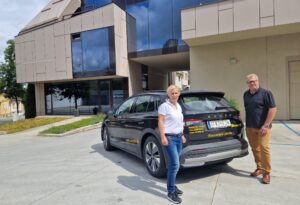 Unser Vertriebsmitarbeiter für Mobilkräne, Herr Achim Wörner, übernahm kürzlich sein neues Dienstfahrzeug – den umweltfreundlichen Škoda Elroq. Die symbolische Fahrzeugübergabe fand gemeinsam mit Birgit Lahofer-Loserl statt.